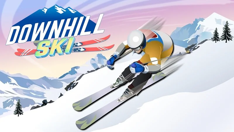 Downhill ski winter game. Move left and right and avoid all obstacles.